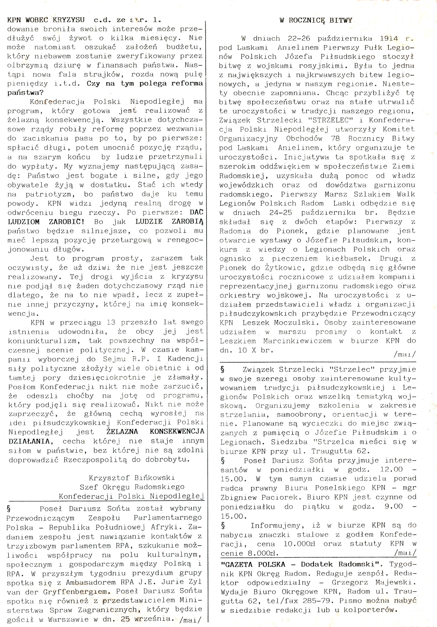 Biuletyn Informacyjny KPN Okręgu Radomskiego