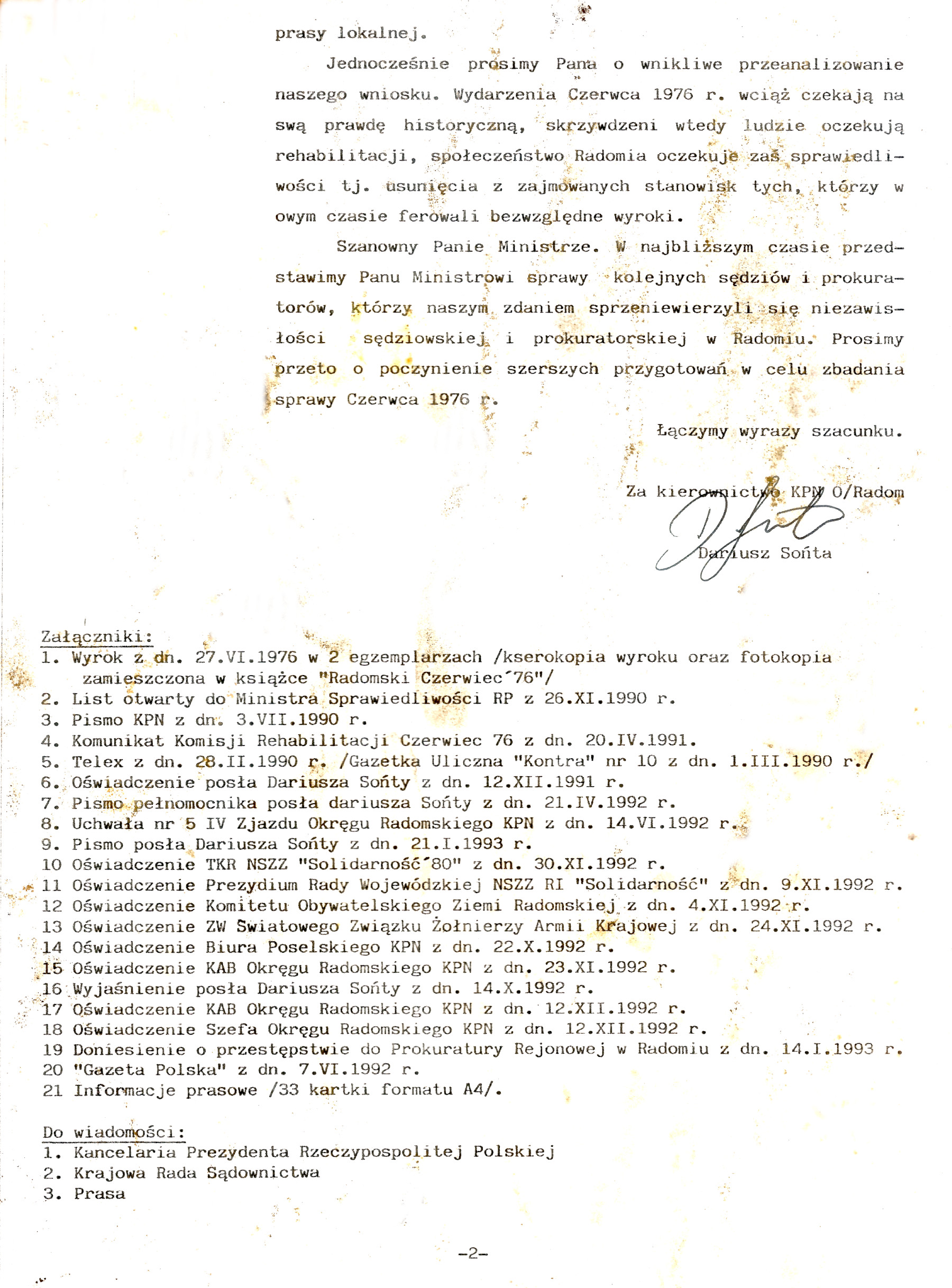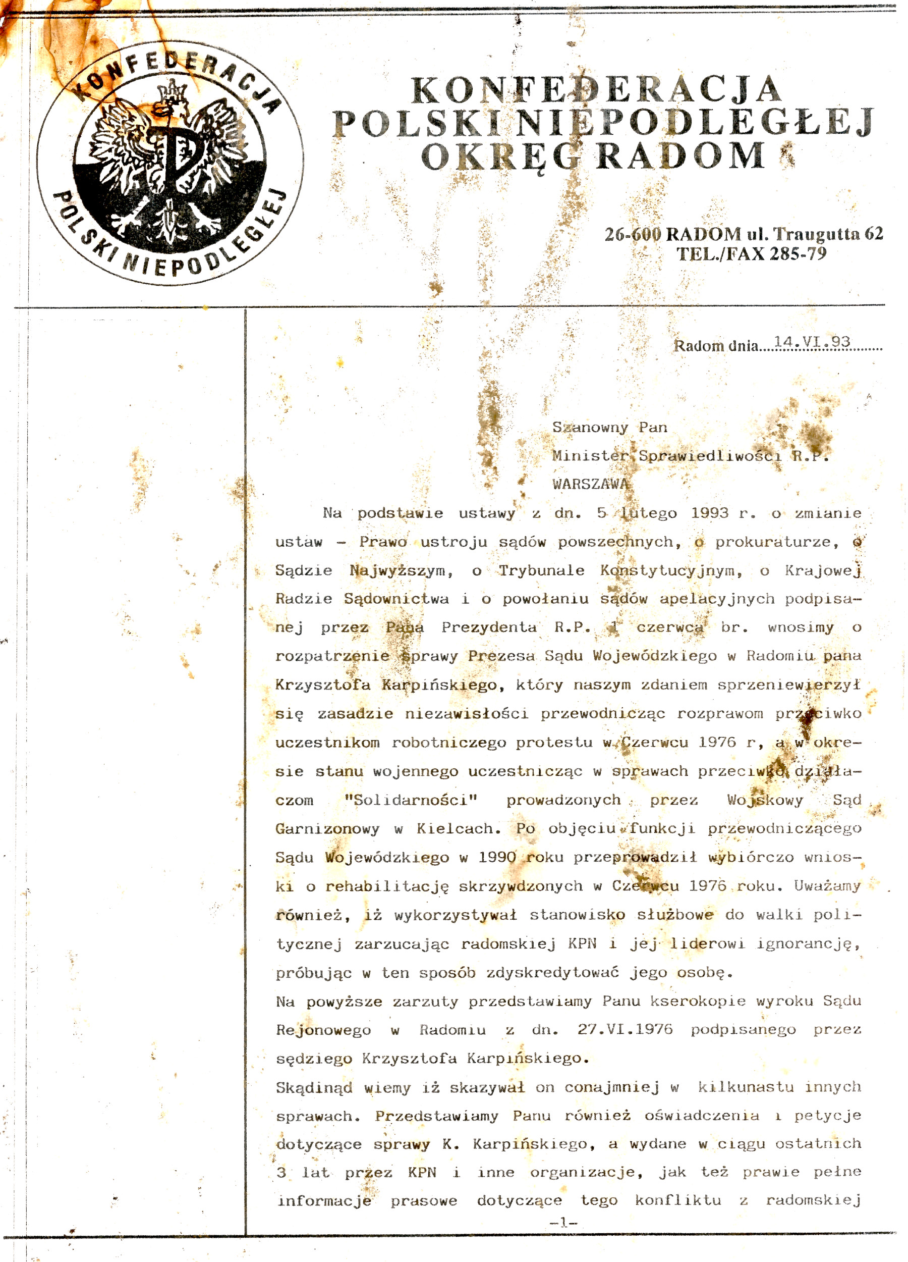 KPN do Ministra Sprawiedliwości z 14 czerwca 1993