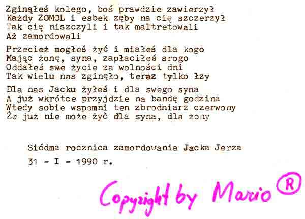 Wiersz w 7 rocznicę zamordowania Jacka Jerza