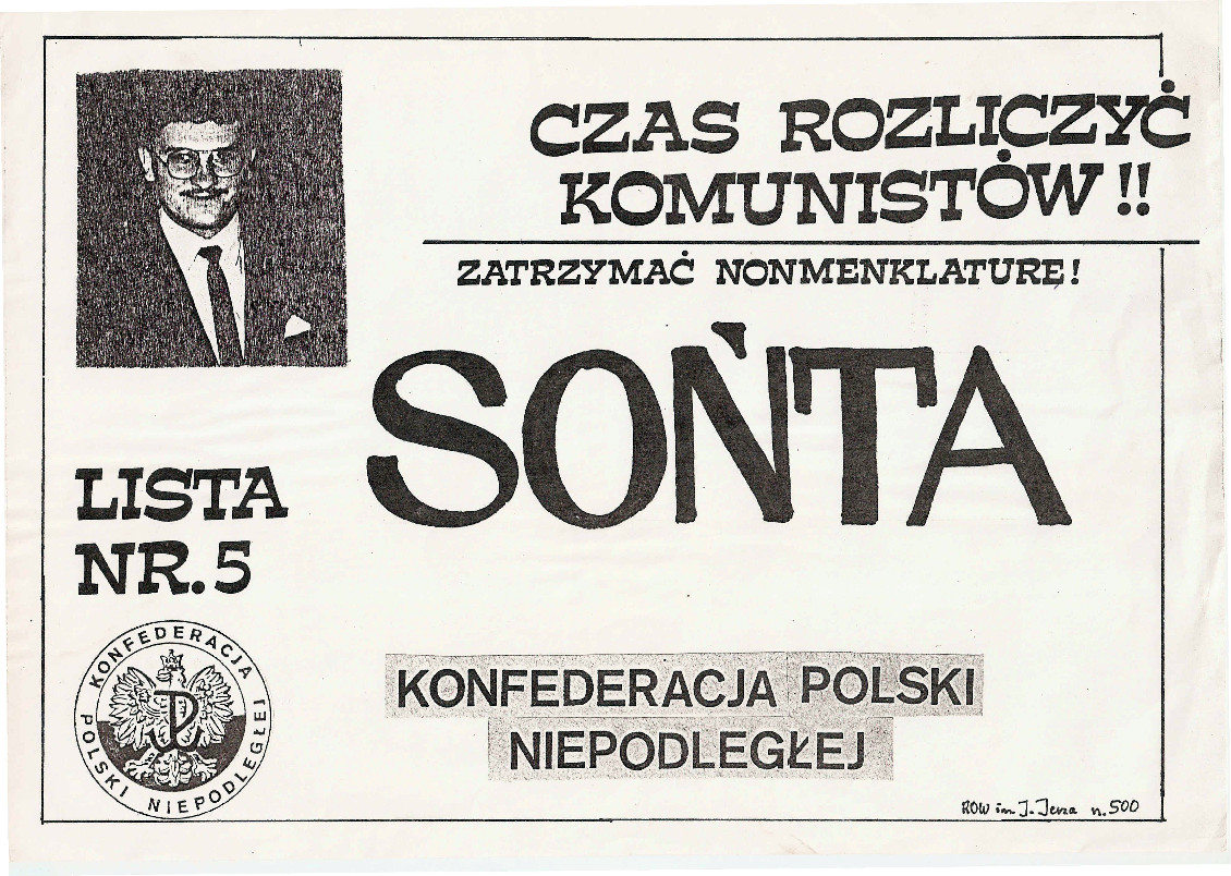 ulotka wyborcza Sławomira Sońty - Czas rozliczyć komunistów