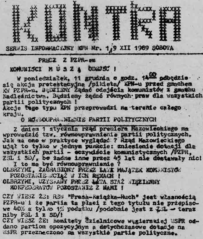 Nr 1. 09.12.1989r., format A5, stron 2, nakład 2 tys. egzemplarzy