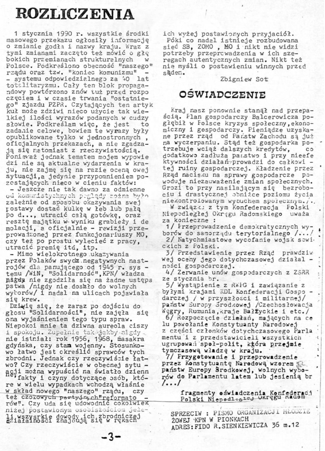 Sprzeciw Pismo OM KPN RD Pionki