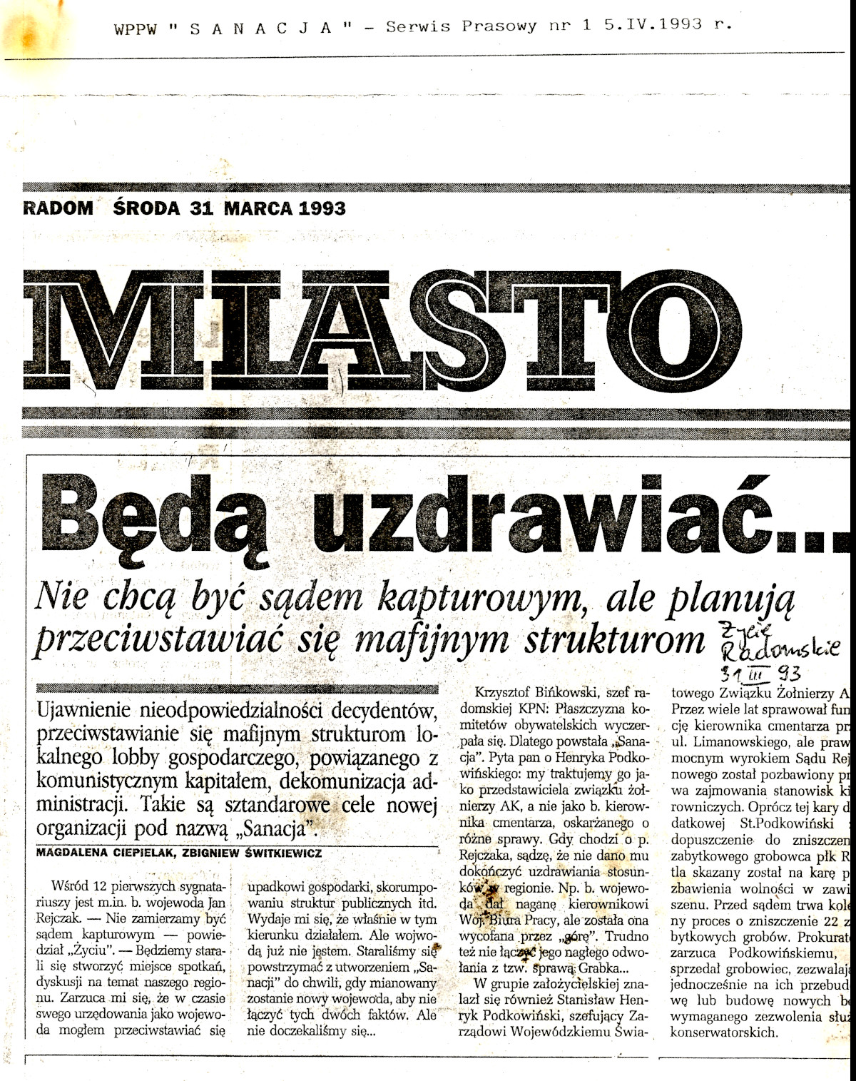 WPPW SANACJA Serwis Prasowy Nr 01