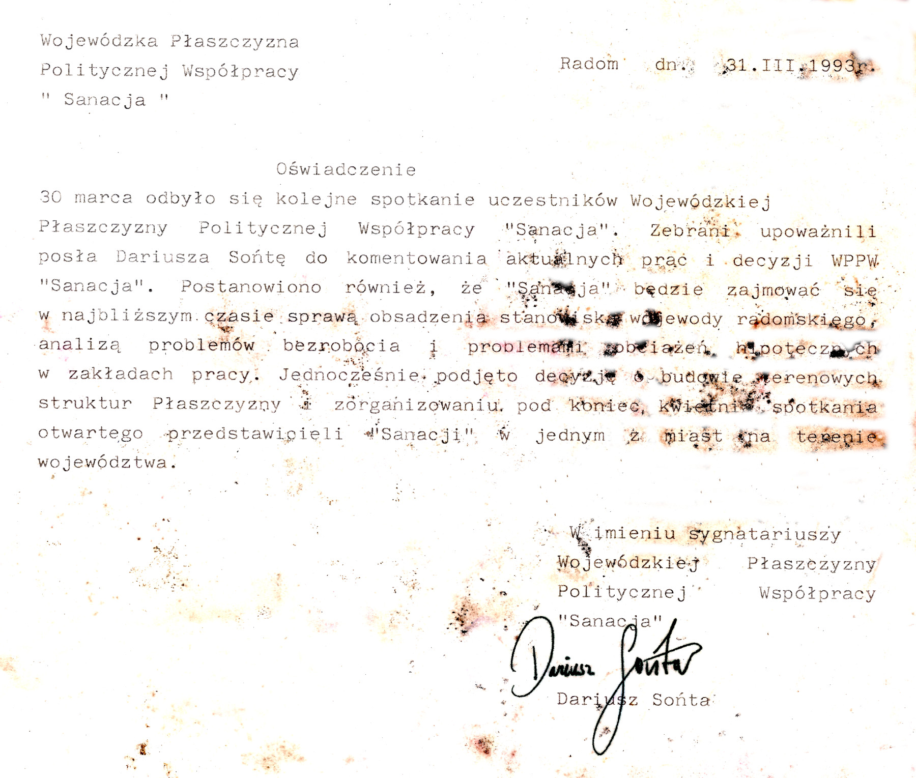 Komunikat z 31 03 1993 r